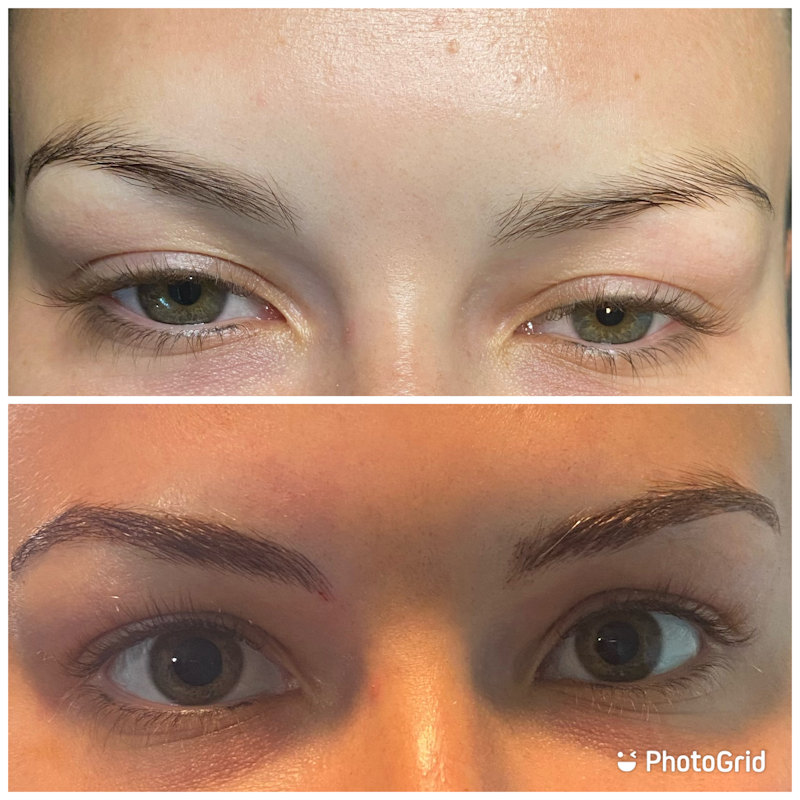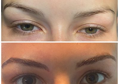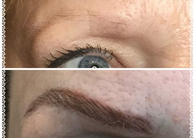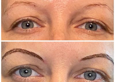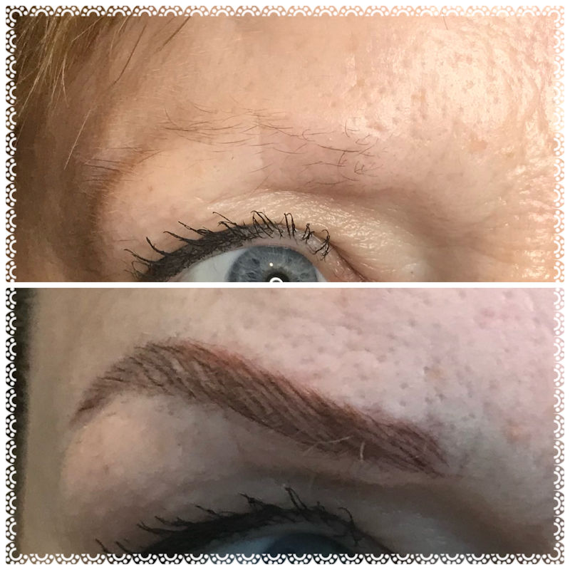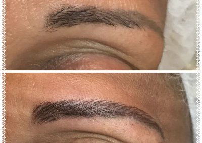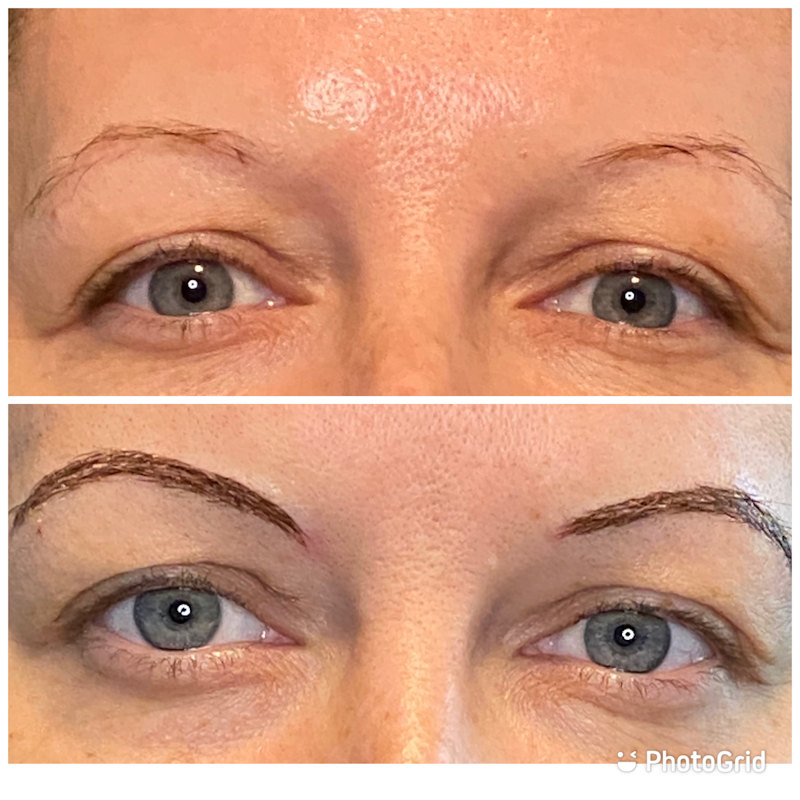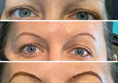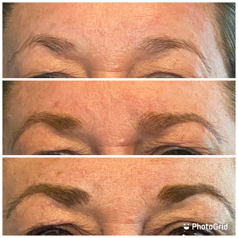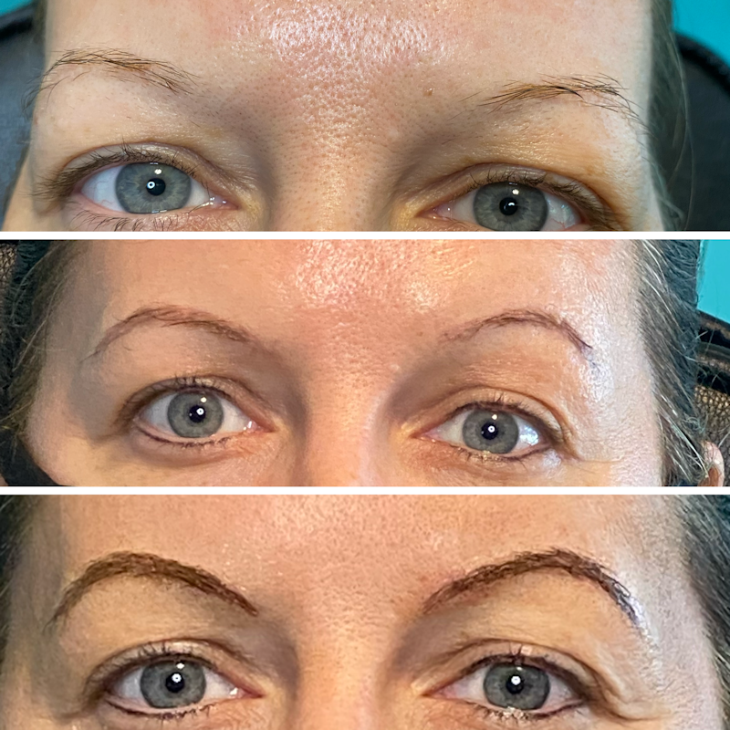 Microblading – A form of semi-permanent tattooing using a specialized handheld tool that holds disposable micro-blades. The pigment is implanted into the superficial dermis which allows me to create beautiful natural-looking hair strokes.