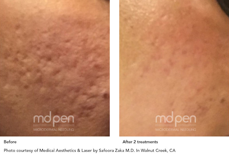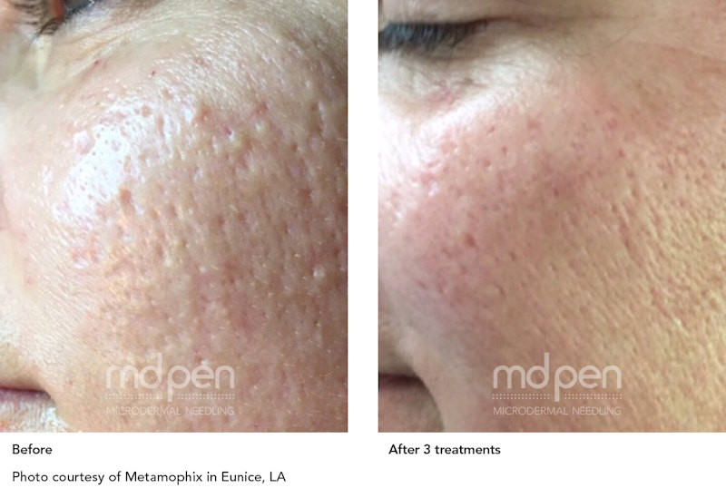 MDPen rapidly creates a pattern of micro channels in the treatment area that significantly increase the production of collagen and elastin to leave the skin smoother, fresher, and more uniform. Micro channels also create micro-injuries which causes the body to send blood and growth factors to the area resulting in glowing, healthy skin.